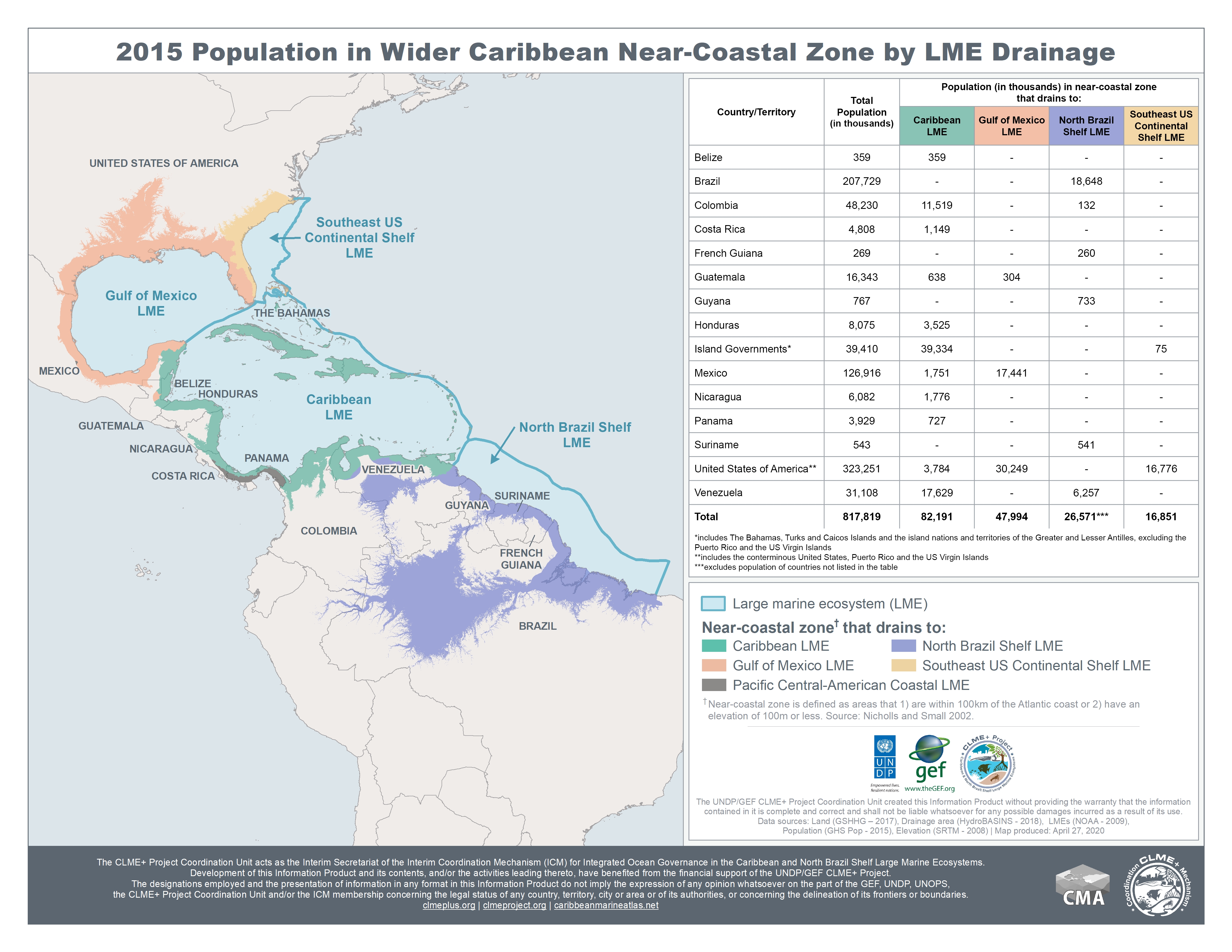 2015 population in the wider Caribbean near-coastal zone by large marine ecosystem (LME) drainage.
