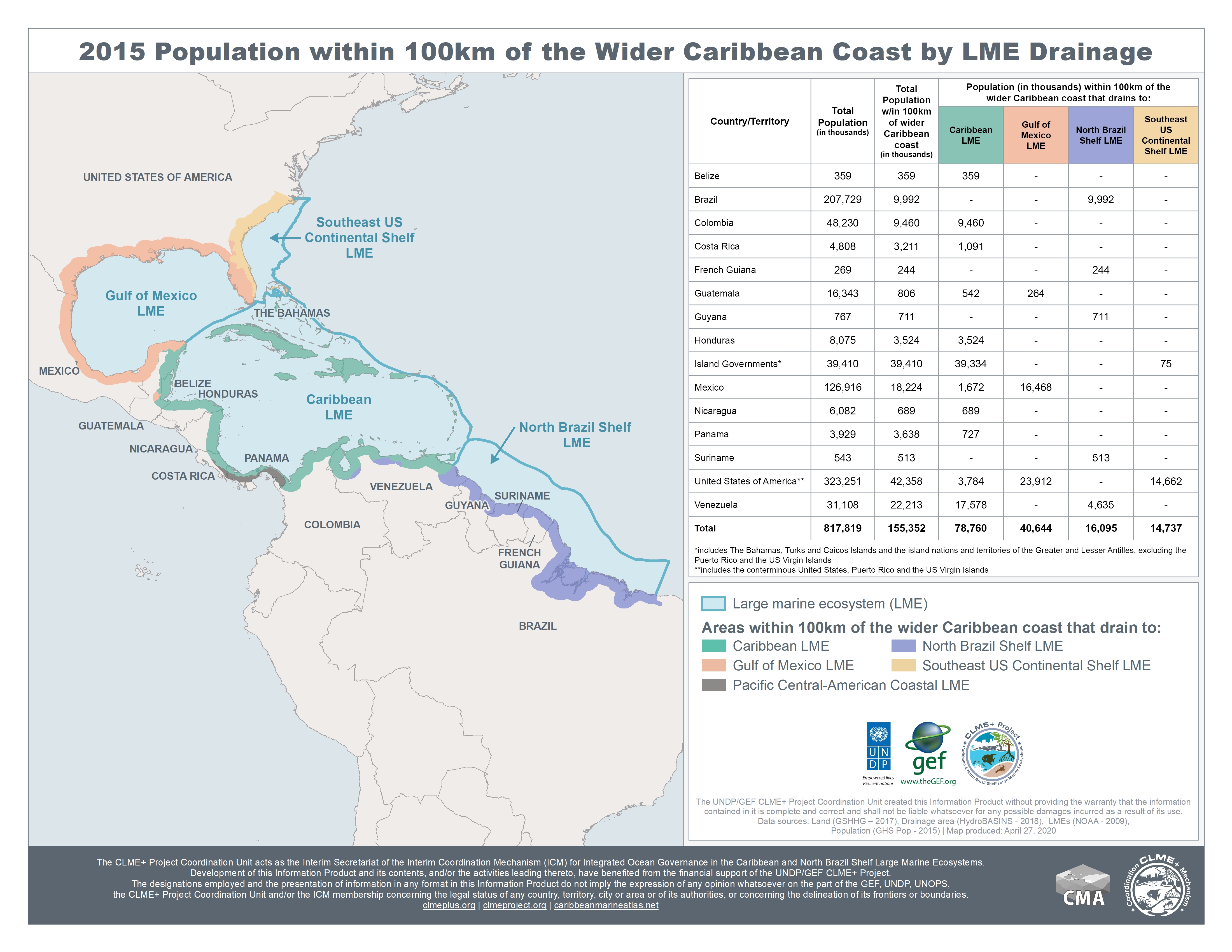 - CLME: 2015 Population within 100km of the Wider Caribbean Coast by LME Drainage
