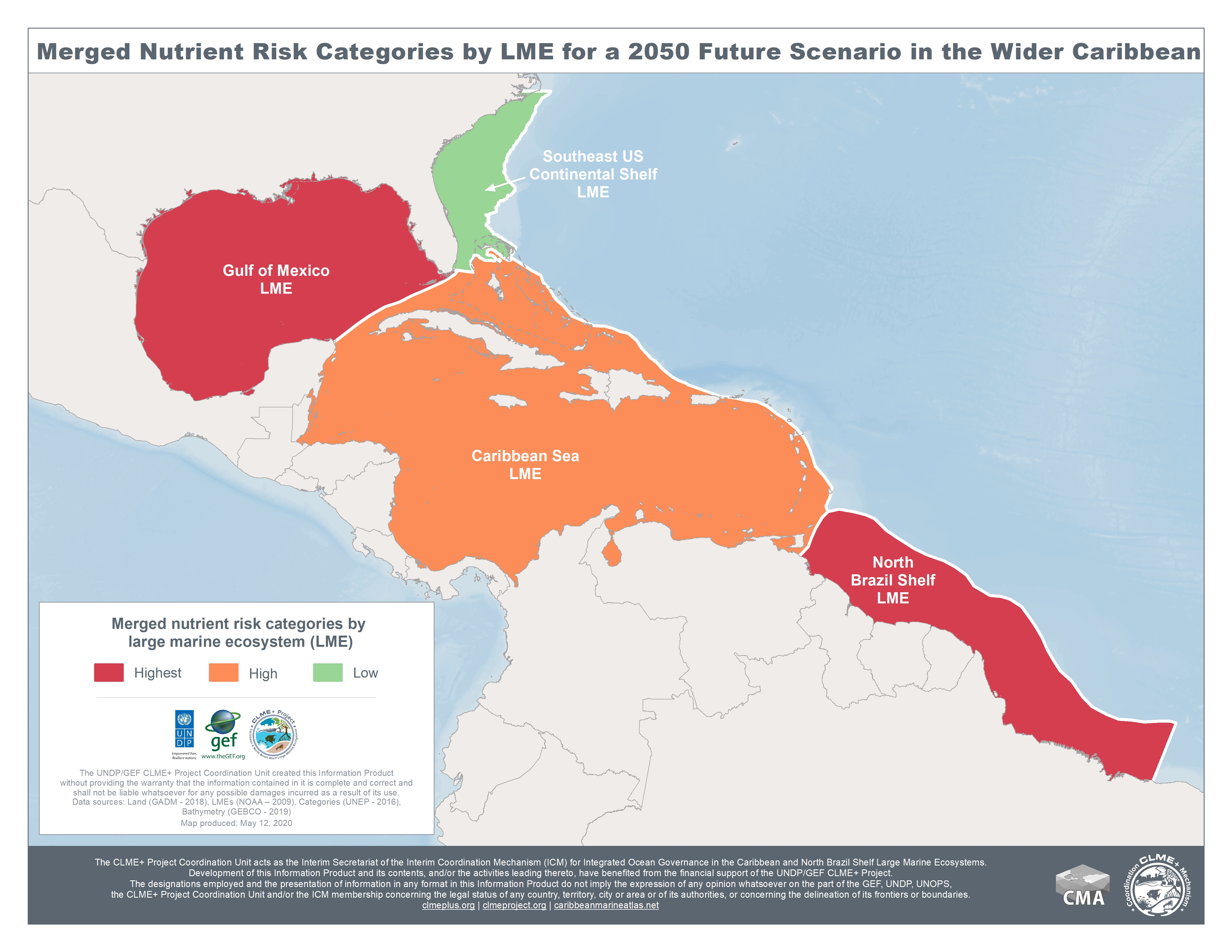 - CLME: Merged Nutrient Risk Categories by LME for a 2050 Future Scenario